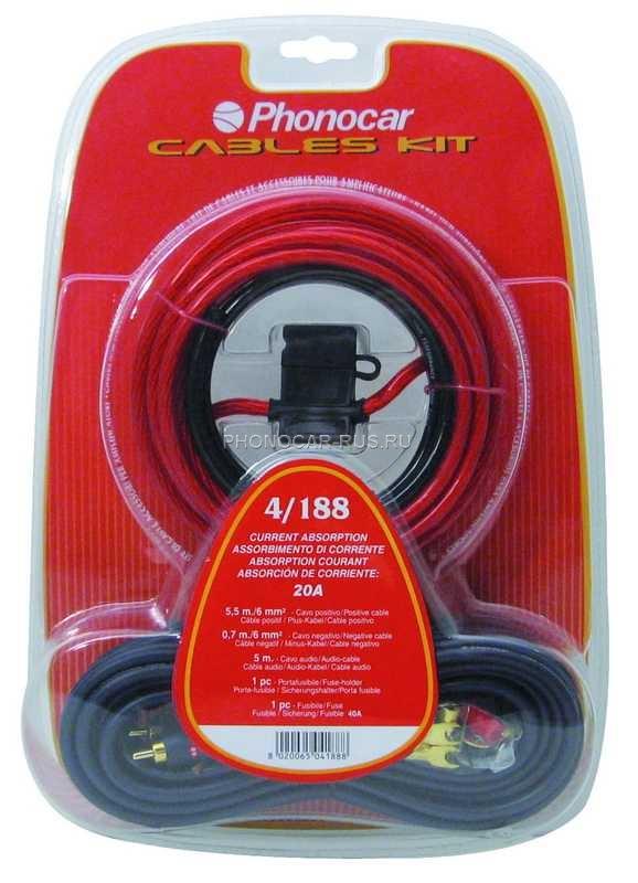 Состав: Силовая часть Сечение: 6 мм.2 Сечение: 10 Ga Длина кабелей: Плюс - 5,5 м. Минус - 0,7 м. М/б кабель RCA-RCA 5 м. Держатель предохр. Предохранитель 40 А. Клеммы. Упаковка 1 шт.